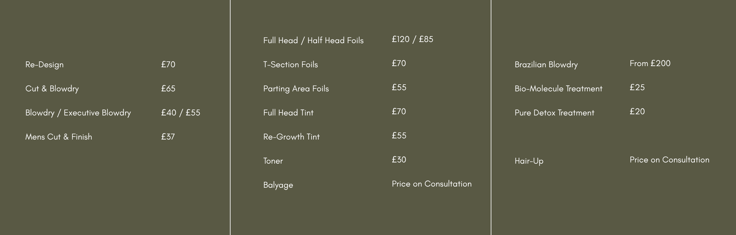 On some occasions these may differ to the prices shown here & may vary depending on hair type, length, service required.