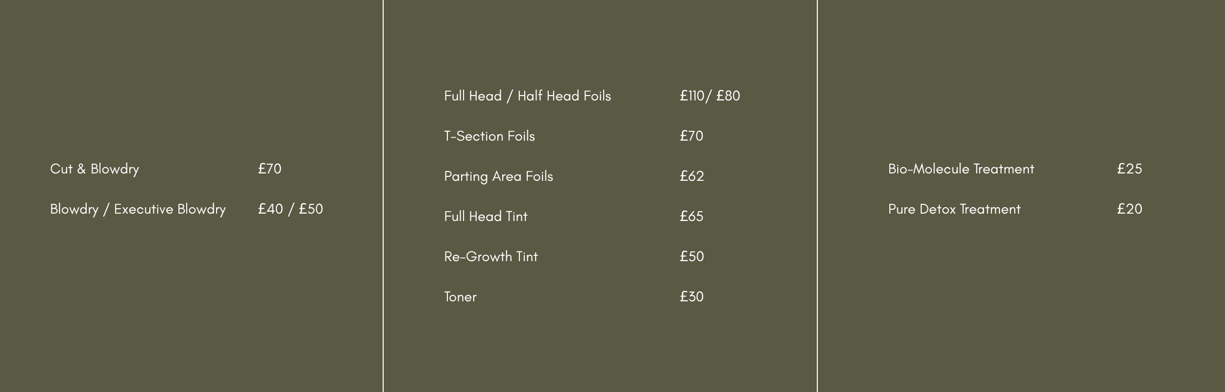 On some occasions these may differ to the prices shown here & may vary depending on hair type, length, service required.