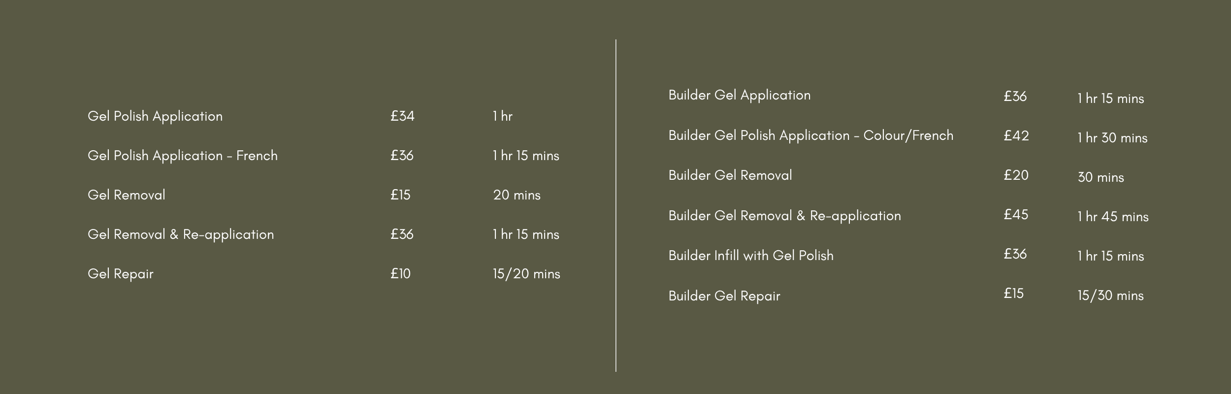 Below is a guide of the prices with Rose however on some occassions these may differ to the prices shown here & may vary depending on nail quality and if you have any damage or breakages to the nail.